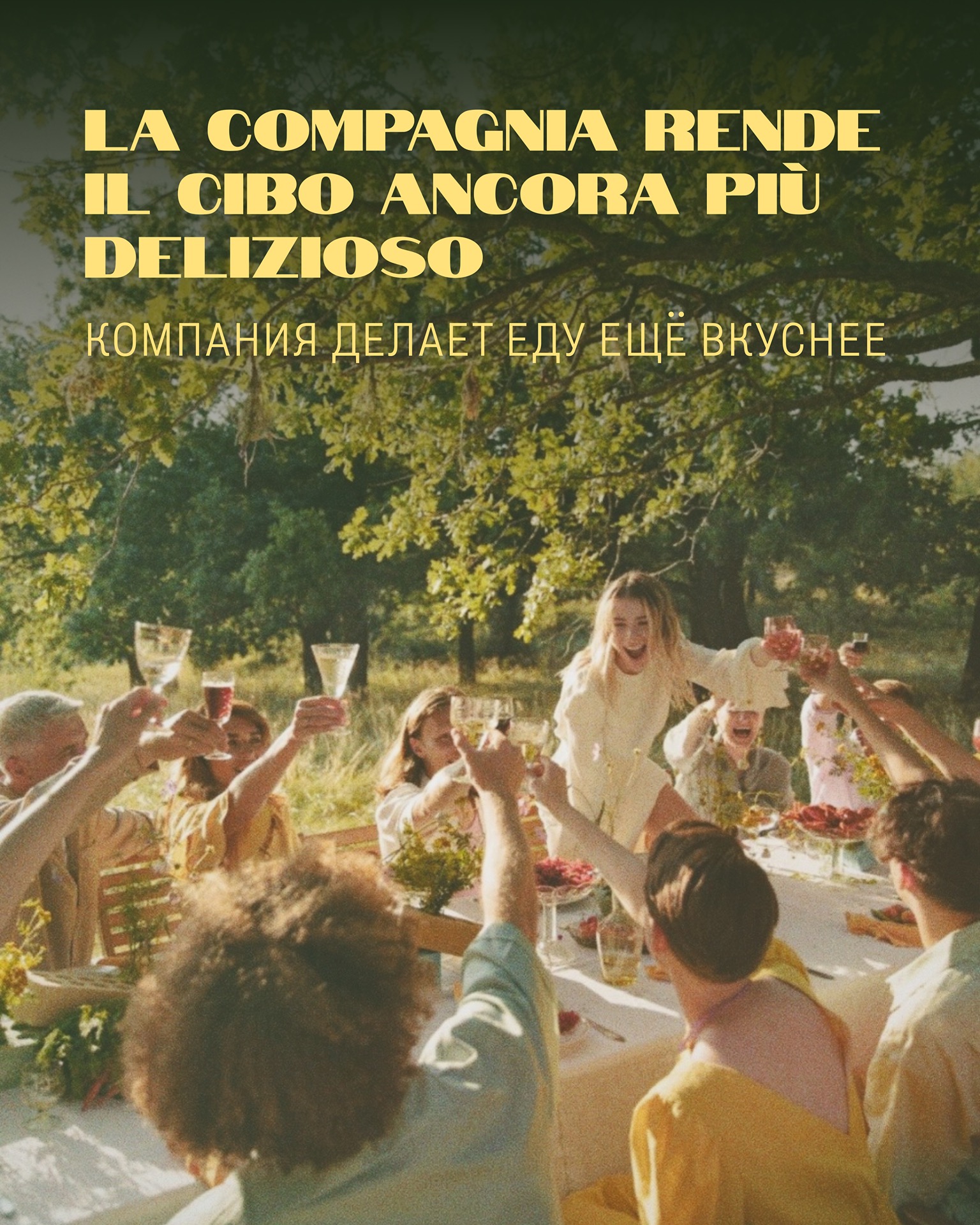 На FestaMIA! Будет как за большим столом итальянской семьи в Тоскане: шумные разговоры, любимые итальянские блюда, вино в бокалах и музыка, знакомая с первых нот.